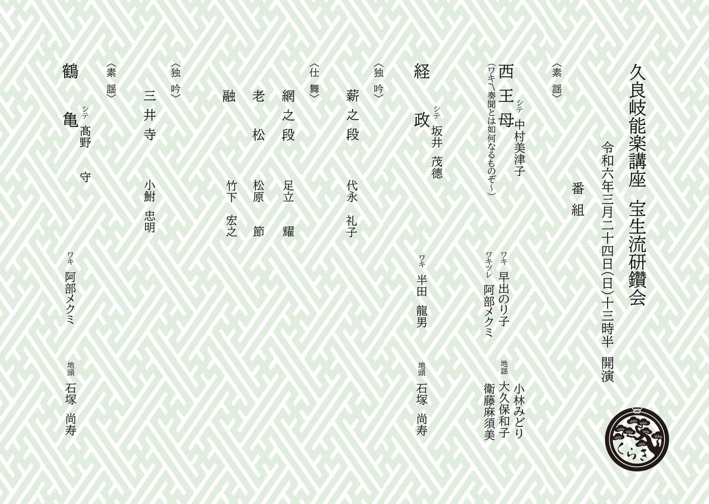 地謡 狩野 了一 友枝 雄人 佐々木多門 友枝 真也