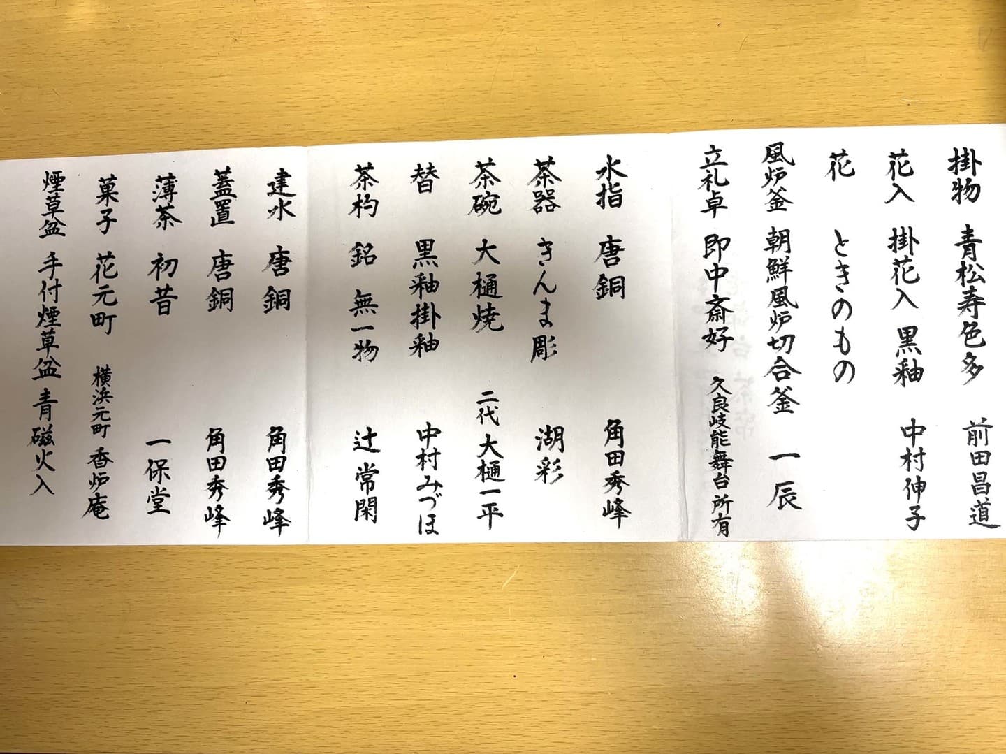 参加費 800円 横浜元町“香炉庵”お菓子付き
