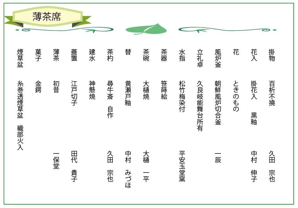 雨天の場合「薄茶」は能舞台席(見所)で「濃茶」は和室で行います!